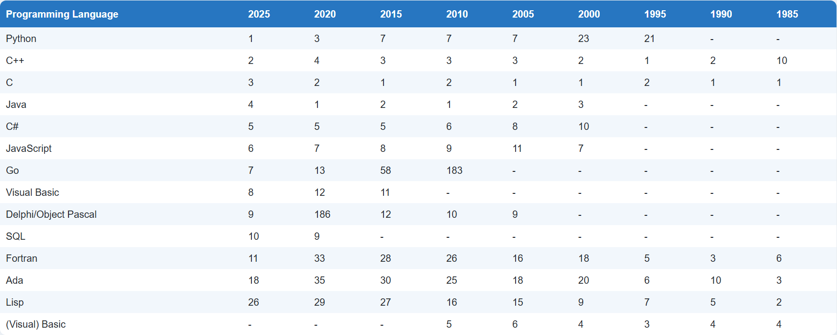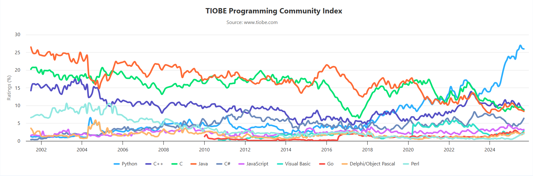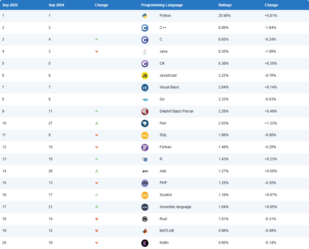 三、2025年9月編程語言排行榜 TOP 10(TIOBE)